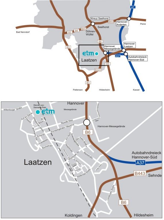 If coming on the A2 from the direction of Berlin we recommend that you take the exit Hannover-Ost. Then you take the A7 in the direction of Kassel, until you get to the motorway triangle at Hannover-Süd, at which you take the A37.