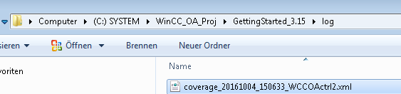 Load the code coverage report (Coverage file coverage_[date]_[time]_WinCC OActrl2.xml) via the Load Code Coverage Report option in the File menu of the script editor. The report is by default located in the log directory of the project.
