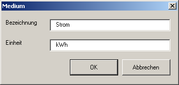 Geben Sie unter Bezeichnung den Namen des Mediums und unter Einheit die Messgröße des Mediums ein.