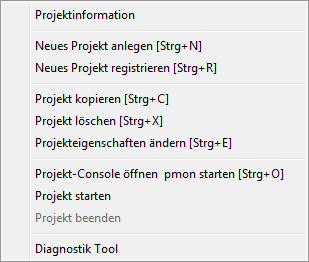 In der Console kann auch ohne Zuhilfenahme der Projektadministration ein individuell zu startendes Projekt ausgewählt werden (Combobox "Projekt").