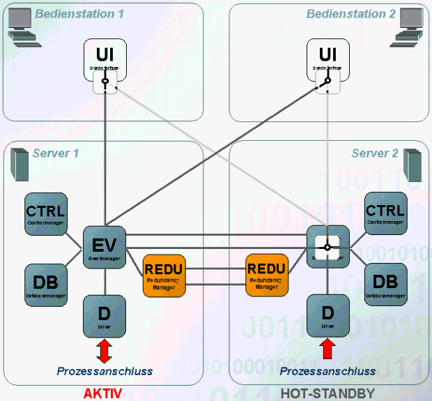 Im Normalfall besteht ein redundantes System aus zwei Projekten auf unterschiedlichen Rechnern mit gleichem Betriebssystem. Auf diesen beiden Systemen, die untereinander mit einer redundanten Netzwerkverbindung ausgestattet sind, laufen dieselben Manager. Die Redundanz an sich bleibt den Managern großteils verborgen, d.h. sie verhalten sich wie in einem einfachen System. Tatsächlich werden Datenstrom und Dynamik über System Messages des Event-Managers kontrolliert und gesteuert.