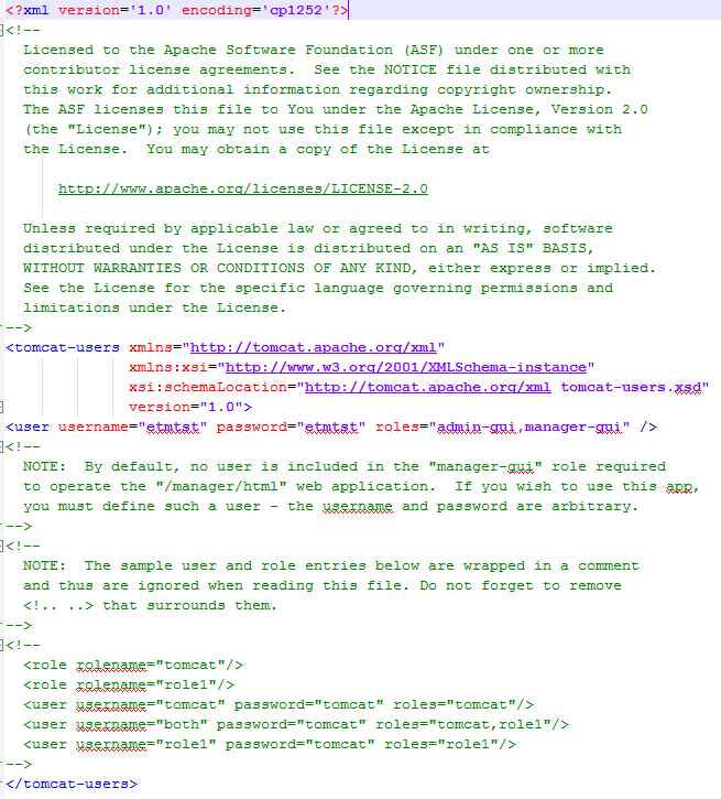 In der tomcat-users.xml-Datei werden die Benutzer, ihre Passwörter sowie ihre zugehörigen Rollen verwaltet.