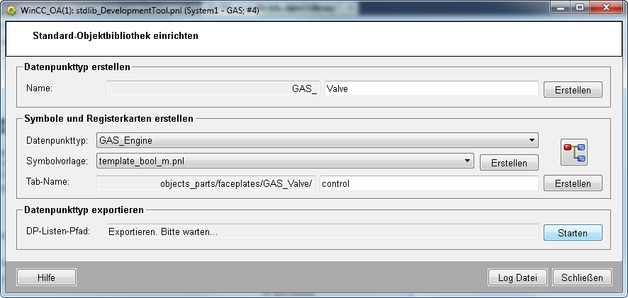 Klicken Sie die "Starten"-Schaltfläche. Das Panel exportiert die Projektdaten. Die Datei wird unter /Datenpunktlisten"/<Projektname>_stdlib.dpl gespeichert.