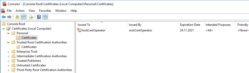 - Then import the pfx certificate. For how to import the .pfx files into the Windows Certificate Store - see chapter Create, Convert and Import Multiplexing Proxy Certificates.