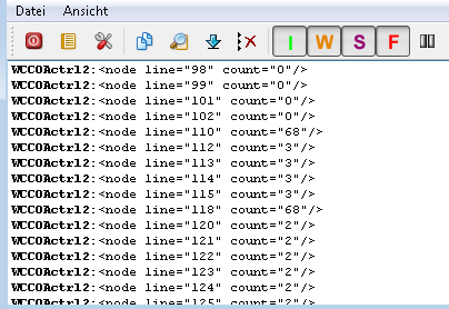 Set this report flag after setting the -dbg CTRL_PERF flag. The following performance data is written to the CTRL coverage report file "coverage_$DATE$_$TIME$_$MAN$.xml". interpreterTime - time in microseconds in the interpreter interpreterTimeDependent - time in microseconds inclusive called functions in the interpreter BlockedTime - respond time in microseconds (e.g. for a dpGet() answer) BlockedTimeDependent - as above, but inclusive called functions CallCount - number of calls during the performance measurement For more information on this CTRL Coverage report flag, see the description of the report flags for CTRL coverage in the beginning of this chapter. |