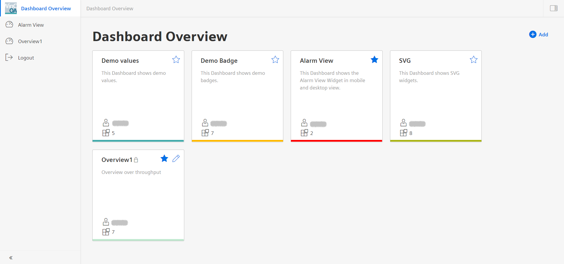 The Dashboard is angular-based and connects to WinCC OA via an HTTP Server. Thus it can be opened in all supported browsers, both on desktop and mobile devices.