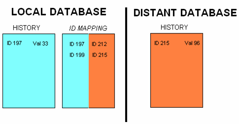 - The archive data of the remote database is written to the local last value table. Again, the element IDs are adjusted using the mapping table.