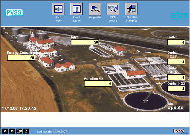 Example of a WinCC OA HTML reference for a process display by showing the associated system states.