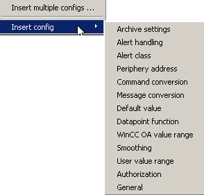 Via the entry Insert multiple configs ... you can add several configs to an element from a selection dialog by activating the check boxes. With Insert config you select only one config and the element should subsequently be extended with it.