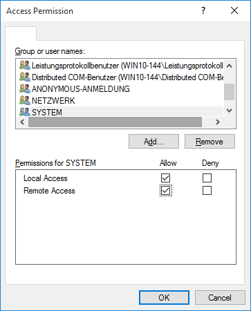 To establish a DCOM connection between two computers, both computers must have appropriate access permission. If both computers are running in the same domain, user data is automatically synchronized. In this case, the steps described in this section are not necessary. However, if you are using workgroups you have to consider the following settings.