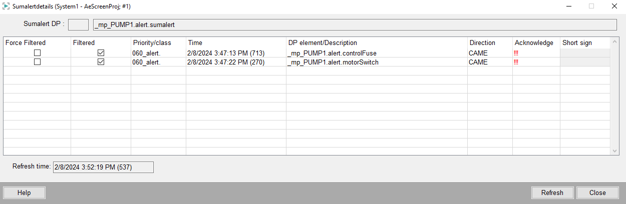 The alarm filtering can also be used if an alarm class was not specified for a sum alarm.
