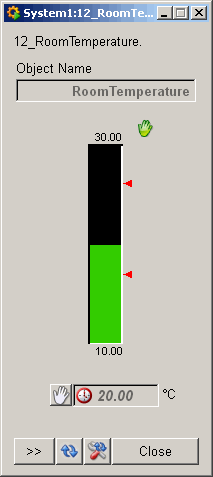 Open the faceplate of the object "RoomTemperature" by a double-click on the corresponding row of the table.