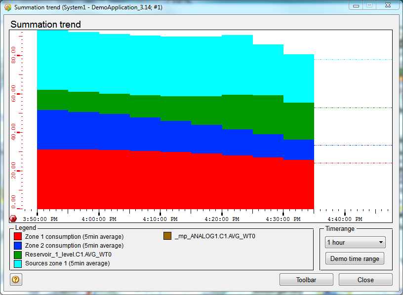 A sum trend is created using the standard value-time trend widget and CONTROL programming.