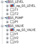 The tree view of the PARA module will be shown as in the figure below. For the 3 device-oriented datapoint types, 6 datapoints P1, V1, V2, V3, T1 and T2 exist. If you are in a hurry, proceed with the chapter Creating Process Images - The Graphic Editor.