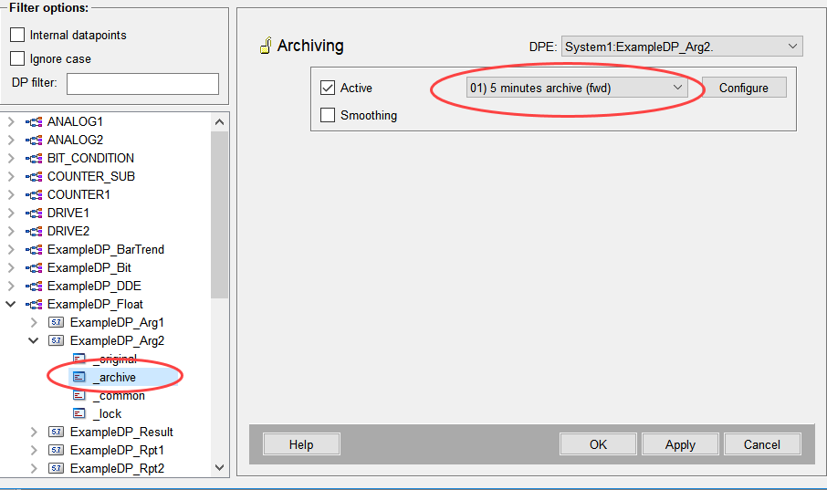 Configure an archive config on a datapoint element. Choose the 5-Minute Archive (fwd) and click "Apply".