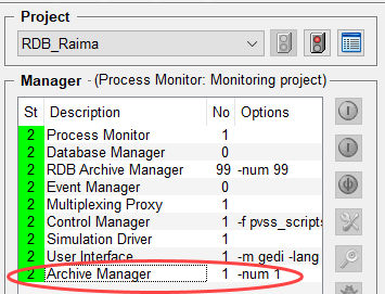 Internally the RDB manager uses the archive number 97 by default. In the console, however, the RDB manager is started with -num 99.