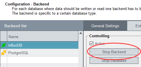 - Restart the backend (out-of-proc) by using the Stop Backend button of the Backend tab -> General Settings: