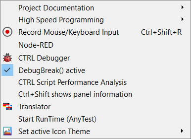 The Panel menu lets you to create (New panel), open (Open panel), close (Close panel), print and save panels (Save Panel, Save Panel As, Save Panel As Version - see also Saving panels). Furthermore, the panels that were opened last, are shown. You can re-open a file by clicking on its file name. The panel can also be opened in the quick view mode (Quicktest panel).