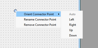 When right-clicking on a connector point, the context menu allows you to rename, remove, or change the orientation of the connector point. Holding the left mouse button and moving it will move the connector point.