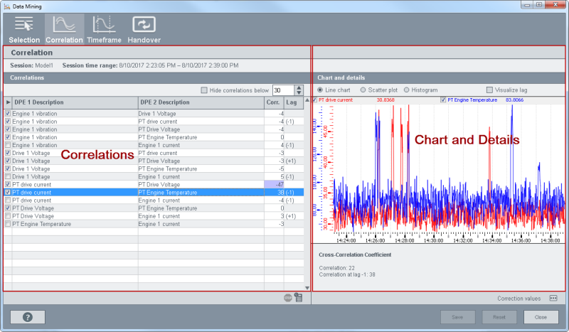The "Correlation" panel consists of the following parts: Correlations and Details