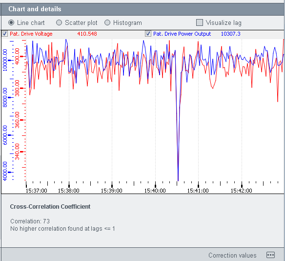 The Chart anddetails section provides a line chart, a scatter plot and a histogram. You can switch between the views via the radio buttons above the view (see figure below).