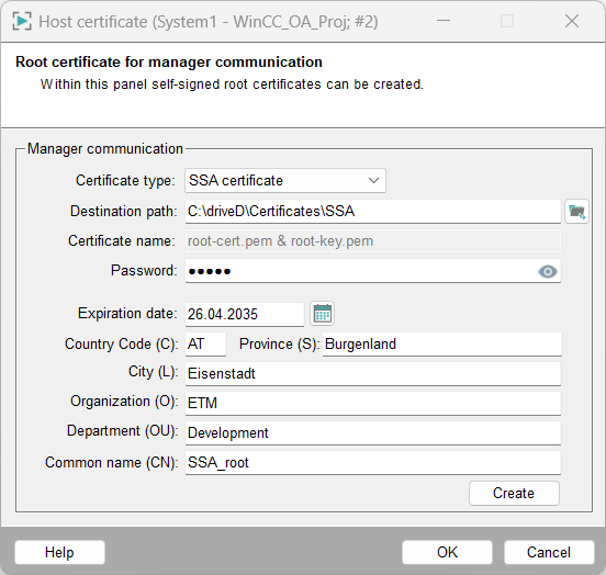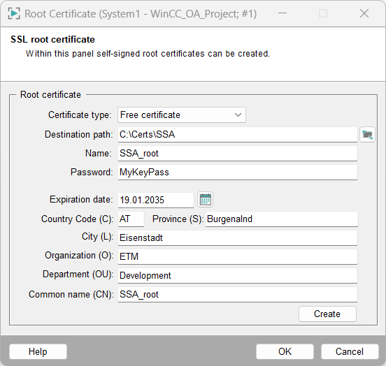 With a root CA, the expiration date can be very far in the future. Reduce the time for host certificates since the security requirements must be met on the plant. In practice, these are often given a term of one year. The plant operator must be aware of this and define processes so that the certificates created are exchanged in time.
