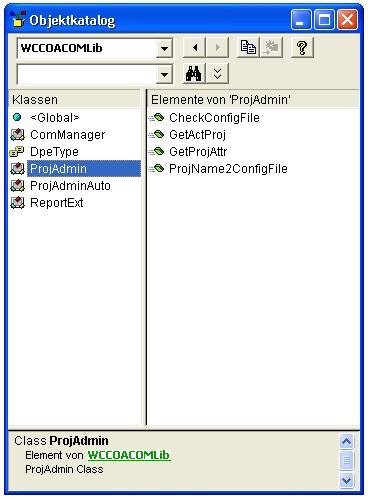 The methods provided by the ProjAdmin object are described in detail on the following pages. An Excel application where a class module CProjAdminSample is defined, is used as an example. You can find the whole example in the WinCC OA version directory in the Excel sheet SampleComManager.xls.