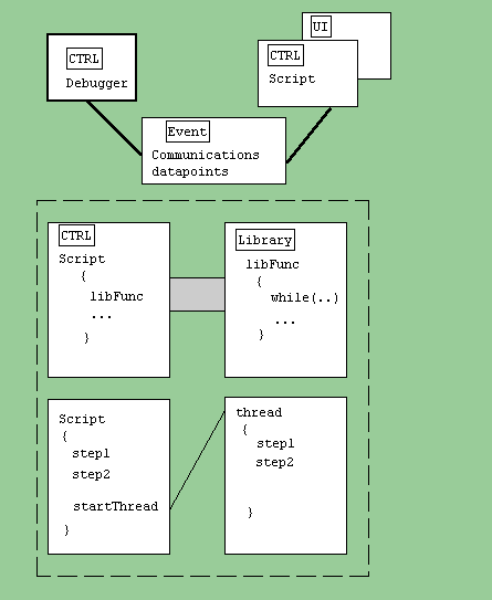 Since the Debugger has an effect on the actual manager during debugging (see also Example), the managers have to communicate with each other. This is the function of the communication datapoints.
