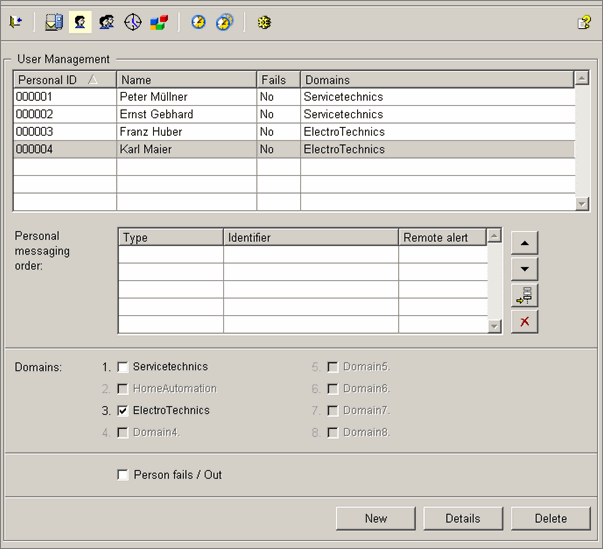 In the following the single users and devices used by the users are configured. All persons that belong to a branch and that should be informed via the Communication Center in WinCC OA when an error occurs, have to be created and configured.