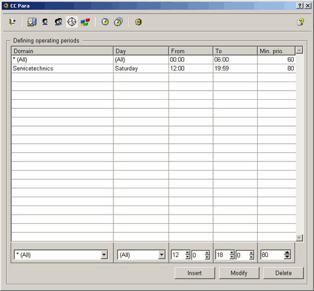 The setting of a operating time and priority is optional. If this filter is not set, all alarms, no matter at which time and with which priority are processed by the Communication Center!