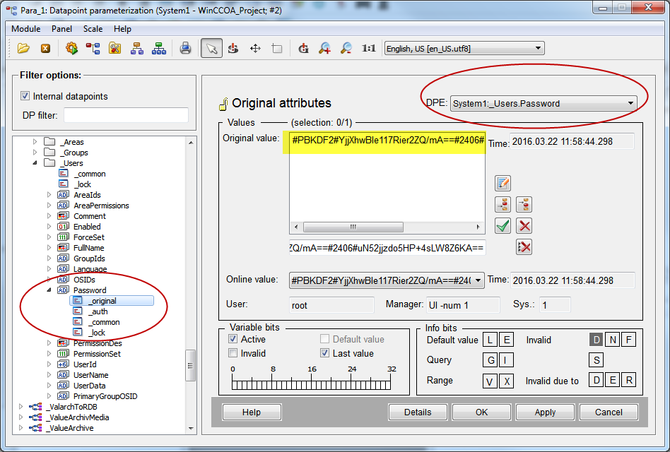 Configure a user in the WinCC OA User Administration. Delete the WinCC OA password of the user in the internal _Users datapoint (see figure below). The user can now log in using the Windows password.