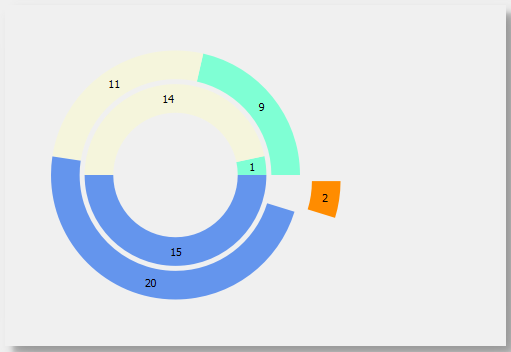 Defines if an item is shown „exploded“, which is: moved outwards by the property value "explosionOffset" in pixel. Note that you must take care about the space between Donut rings if exploded items shall be shown in inner rings by setting an appropriate seriesSpacing property value.