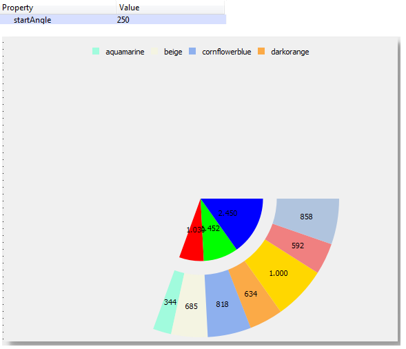 In this example the property "startAngle" was set to 250 degrees.