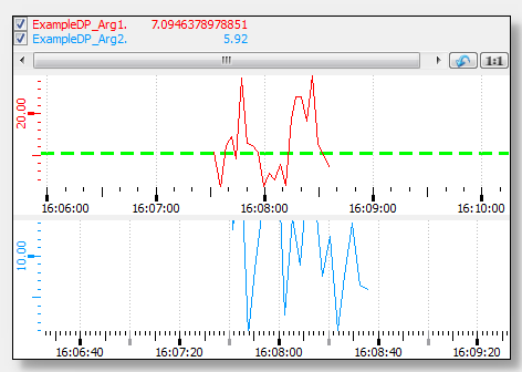 By using the attribute "curveMarking" range of values or a single value can be displayed highlighted. The attribute "curveMarkingX" is used for the XY trend curve of the X part.