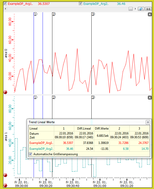 In the following example a ruler is set for a trend curve at the position current time - 60 seconds.