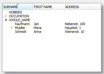 Arranges the items alphabetically in ascending order. By setting "showSortIndicator" to TRUE an arrow is shown next to the column header, which indicates whether the items are sorted in ascending or descending order.