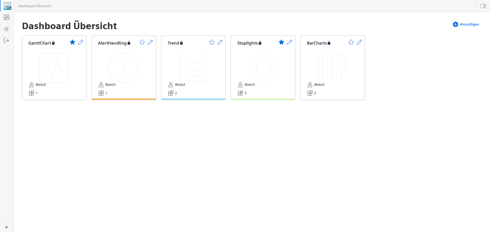 The Dashboard Overview is the central navigation view. It opens directly after Login Options and shows all Dashboards available to the current user in the current project.