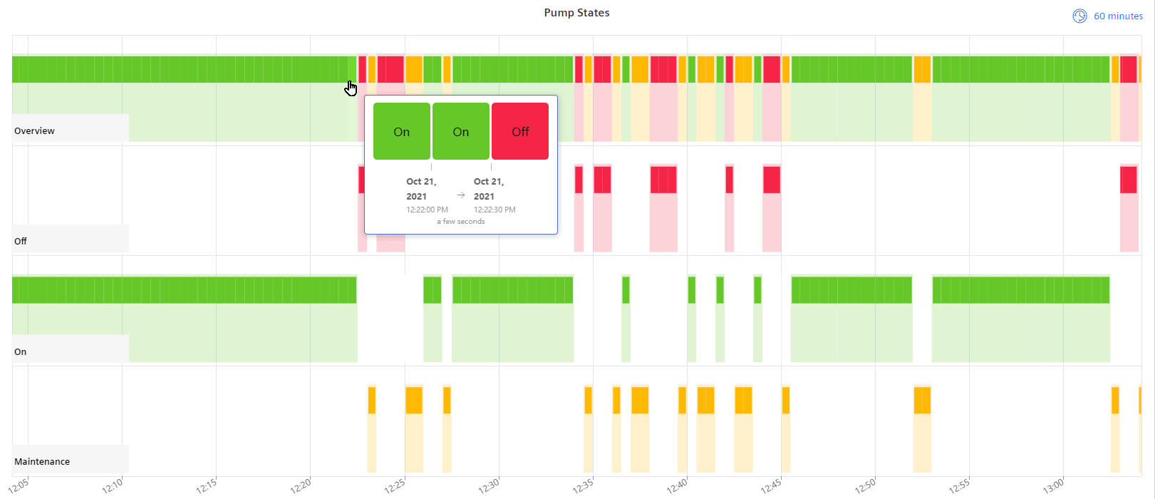 The Gantt Chart provides a time-interval view of the datapoint value. The width of each bar shows the period a certain value was present.