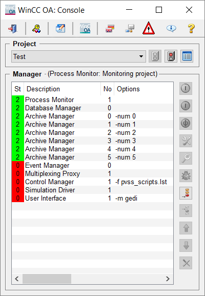 In the console the emergency mode is signalled through a specific symbol. In addition the console and the DataBG are stopped and managers closed (see the list above).