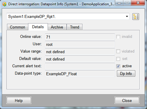 Via the panel Direct Interrogation you can query datapoint values. The panel contains the following tabs: