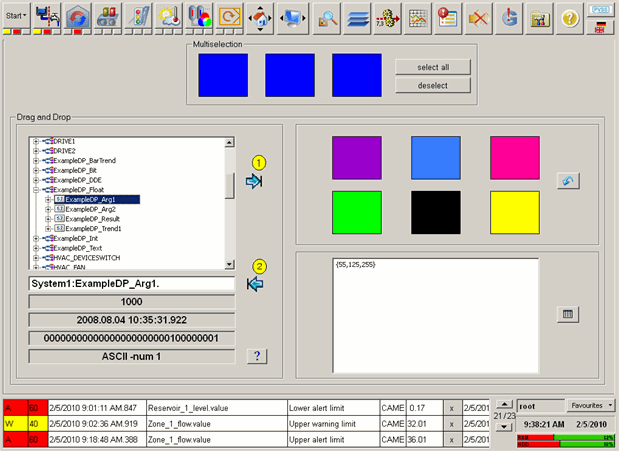demonstrates the drag and drop as well as multiselection of WinCC OA. You can
