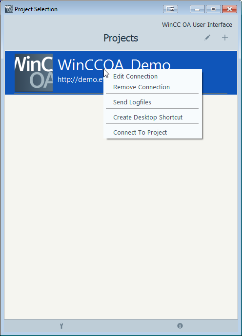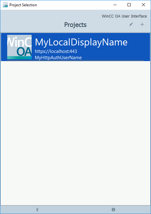 The project name is automatically displayed after the first successful connection to the WinCC OA project.
