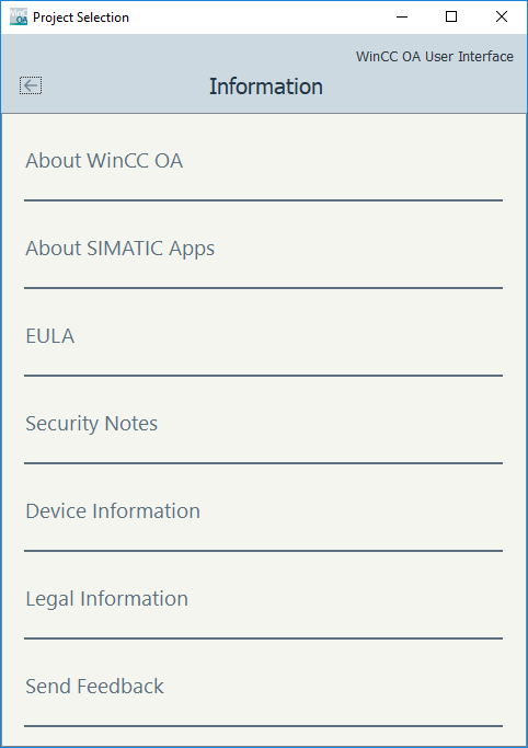 The basic handling and configuration of the Desktop UI matches the handling of the WinCC OA mobile UI. Just some additional convenient enhancements were added for the usage on full desktop environments.
