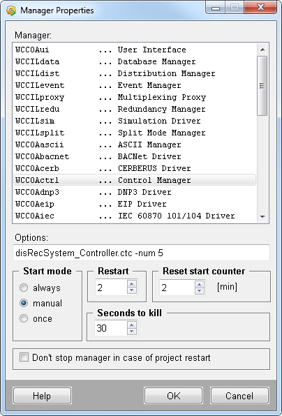 [general] data = "SSS1$SSS2" event = "SSS1$SSS2" - Add a DIST manager (WCCILdist) in the WinCC OA console under