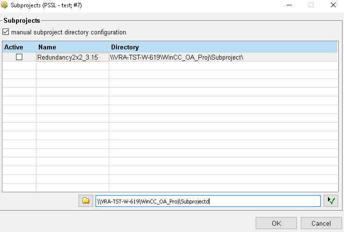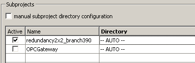 This check box indicates whether the paths for the subproject were configured automatically or manually. This option is only available if the automatic configuration server is enabled in the wizard. In all other configurations, the paths for the subprojects must be configured manually using this panel.