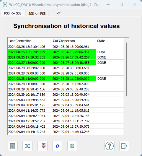 As well as the times given in the table, users can also define their own time ranges, in which the historical database values are synchronized.