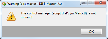 In case that the control script distSyncMan.ctl nis not running but a comparison or synchronization is triggered, the following warning is displayed: