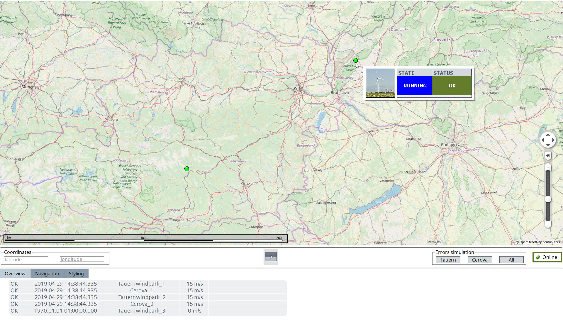 - display custom objects from WinCC OA directly onto the map, e.g. to represent your plant and give additional information like alerts, etc.
