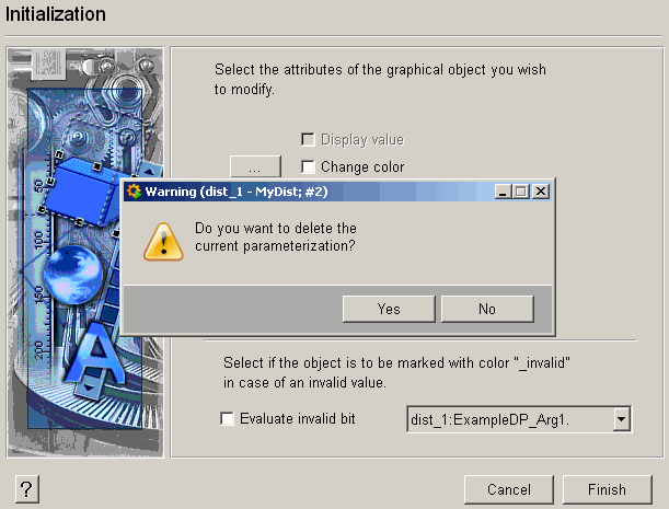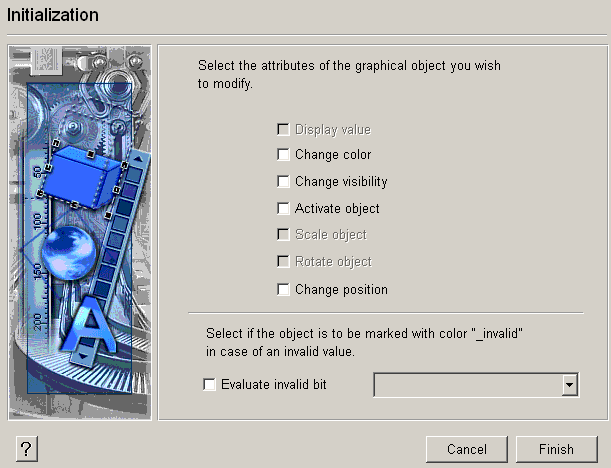 The following screen shot of the Initialization window shows the attributes that can be activated on initialize. Parameters that are not available for a graphics object appear dimmed.