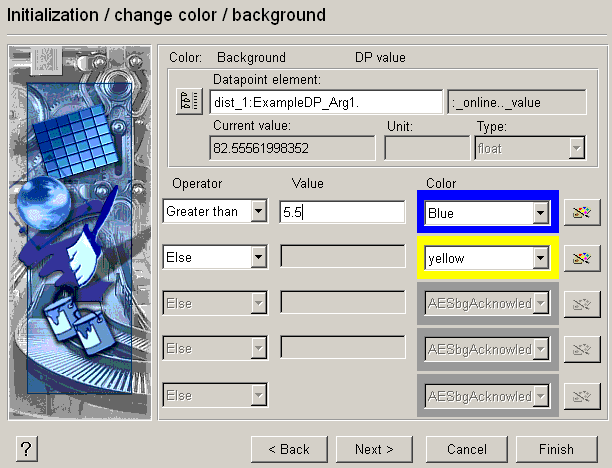 In addition, by using "Evaluate invalid bit" you can select one datapoint (of all datapoints specified in this part of Simple Configuration) and the program checks whether the invalid bit of this datapoint has been set. If the invalid bit has been set, the related object will be displayed with the background color "_invalid".